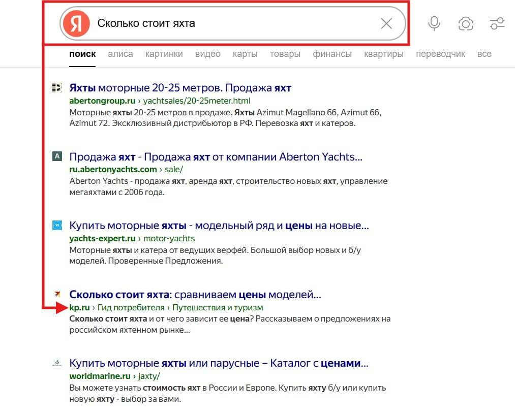 Сформировать устойчивый поисковый охват среди аудитории, интересующейся покупкой и владением яхтами, за счёт размещения рекламных блоков на тематических материалах с высоким позиционированием по нужным поисковым фразам.